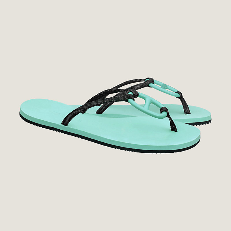 Hermes sandal in technical H canvas, Chaine d'Ancre acetate link, celadon green foam and black rubber sole
