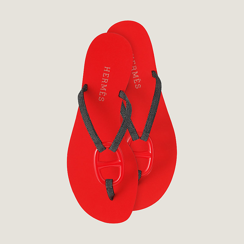 Hermes sandal in technical H canvas, Chaine d'Ancre acetate link, celadon green foam and black rubber sole