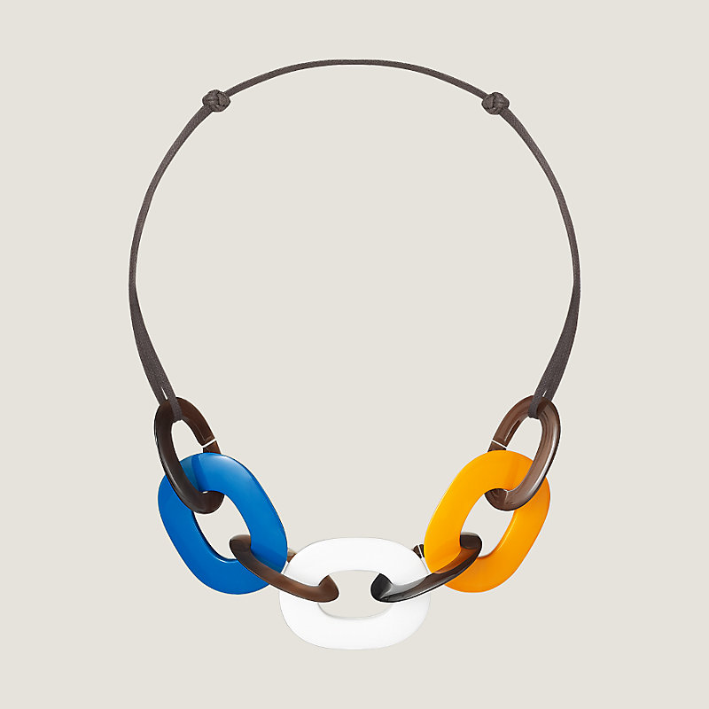 Hermes necklace in buffalo horn and lacquered wood, adjustable waxed cotton strap