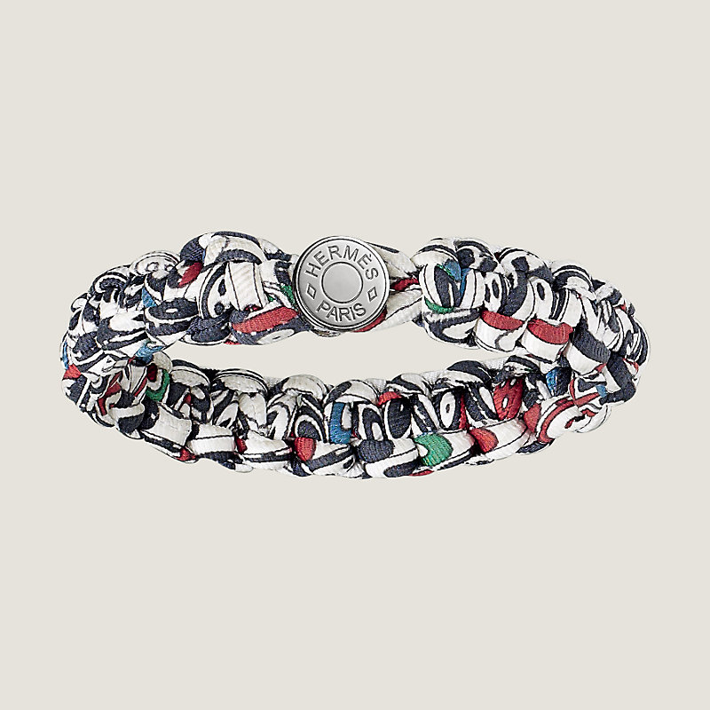 Hermes bracelet in "Music Connection" printed silk twill, palladium plated hardware