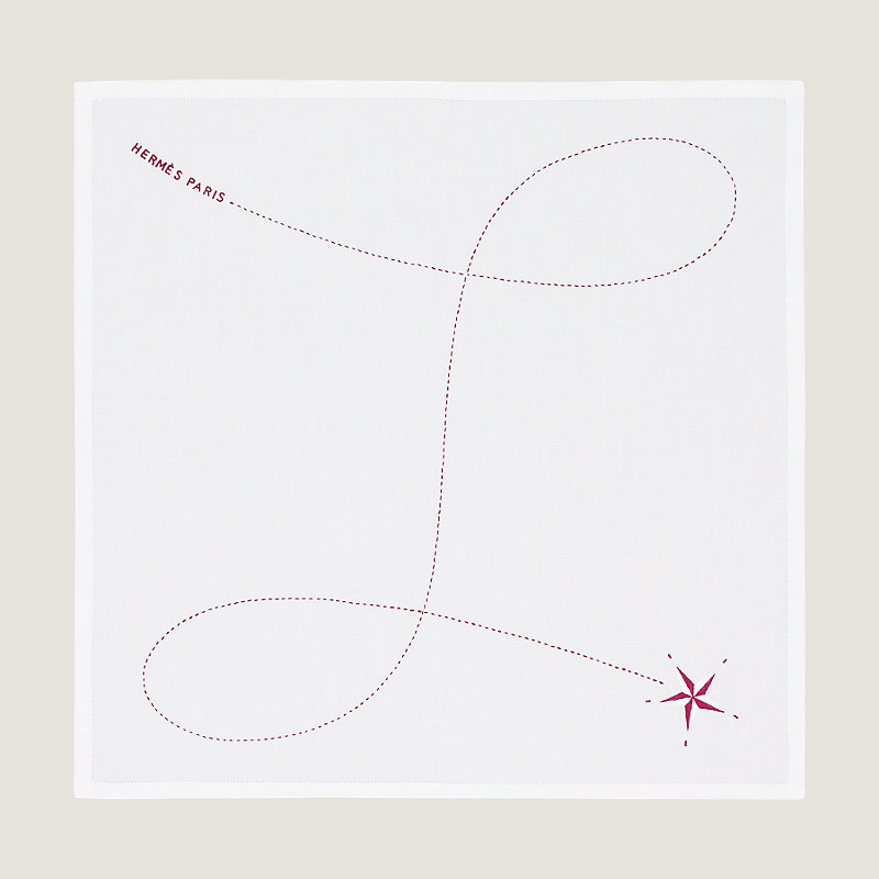 Hermes hand-embroidered handkerchief, "Petit jour" finishing, hand rolled (100% cotton)
