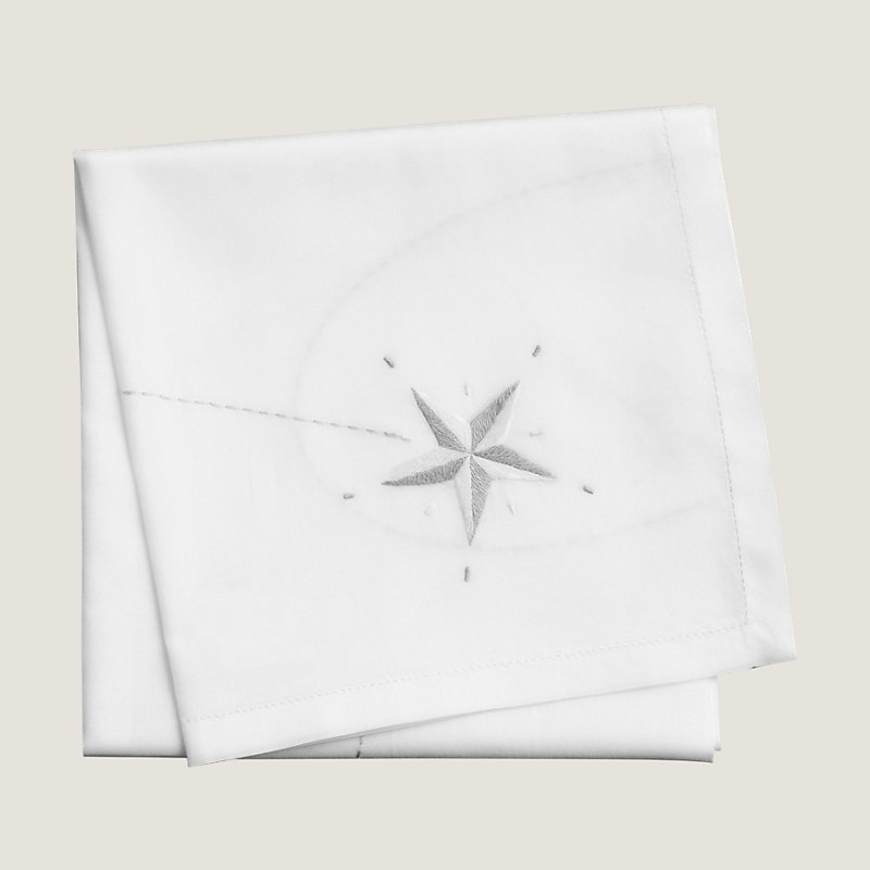 Hermes hand-embroidered handkerchief, "Petit jour" finishing, hand rolled (100% cotton)