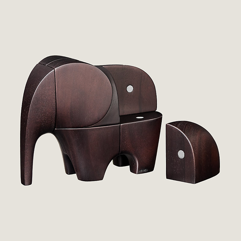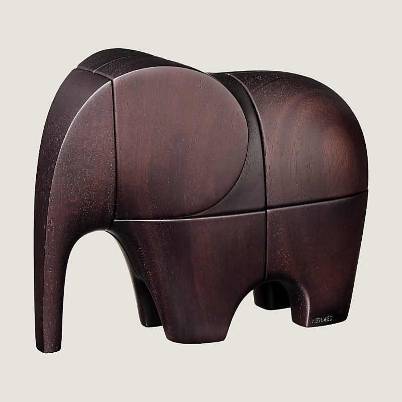 Hermes brain teaser game in solid ebonized mahogany, hand engraved wood with magnets