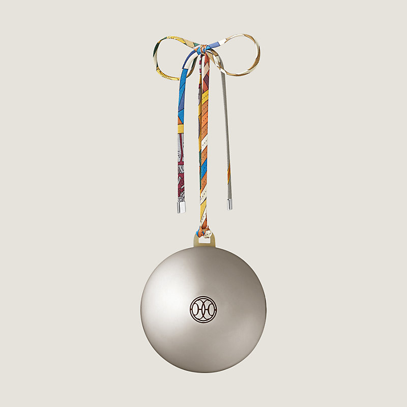 Hermes Christmas ball in hand lacquered palladium plated leaves with engraved "Lift" signature