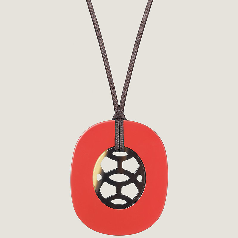 Pendant in buffalo horn and lacquered wood with adjustable waxed cotton cord.