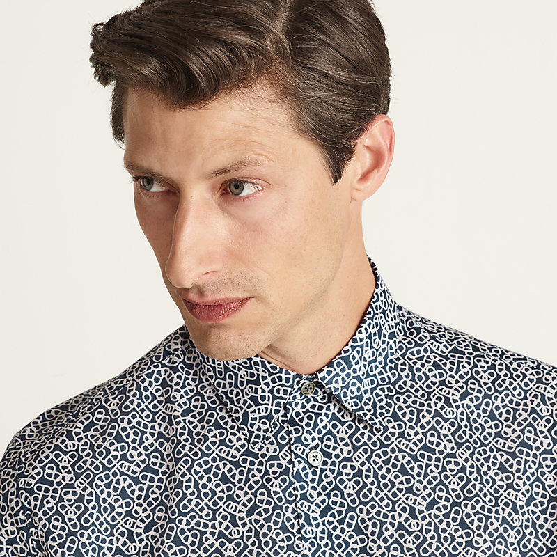 Hermes shirt with "Mini Maillons Chaine d'Ancre" print, fitted cut, flexible collar, pure mother-of-pearl buttons, plain cuffs with palladium plated "Clou de Selle" buttons (100% cotton)