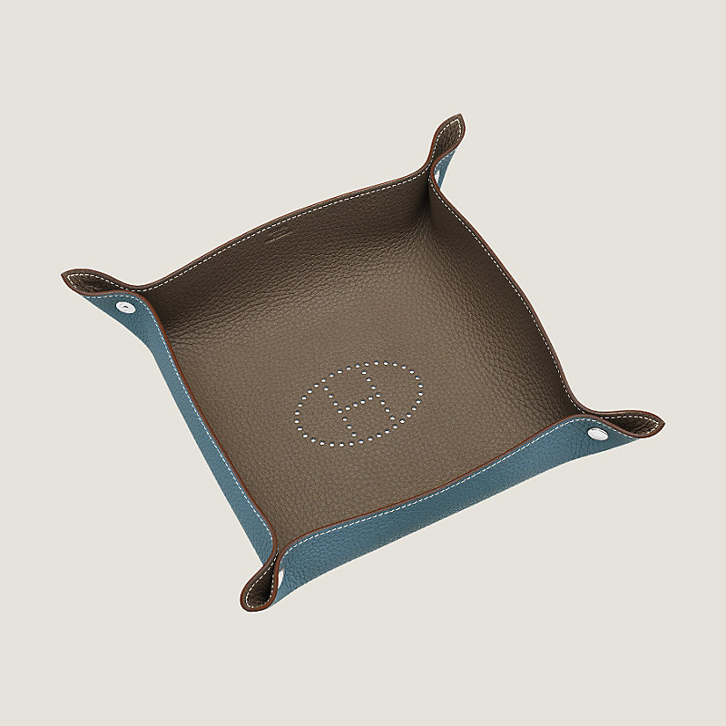 Change tray in taurillon Clemence leather. Perforated Evelyn H signature with contrast stitching.