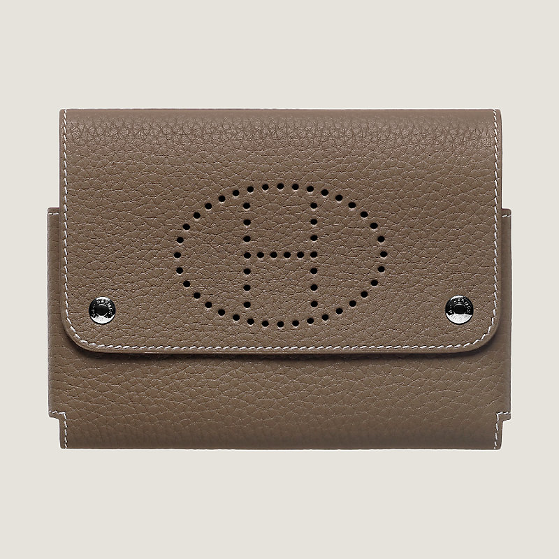 Hermes playing cards holder in taurillon Clemence leather with nickelled buttons. Holds two standard decks of playing cards.