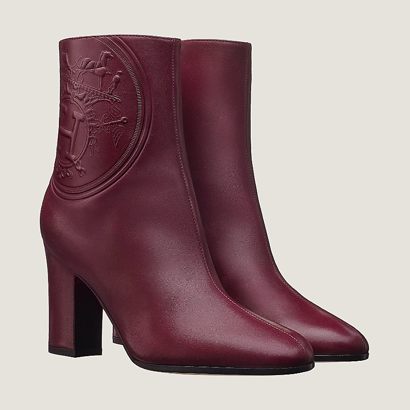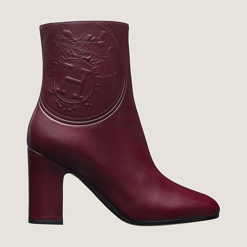 Hermes ankle boot in calfskin, "Ex Libris" embossed detail, heel in calfskin