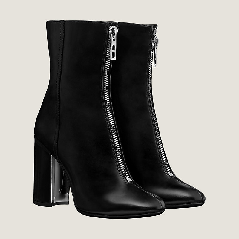 Hermes ankle boot in Tuscan calfskin with palladium plated "Chaine d'Ancre" pattern zipper, heel in Tuscan calfskin with metal insert