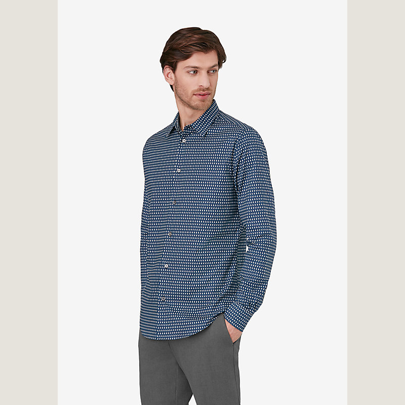 Hermes long sleeve button front fitted shirt in "Pingouin" print, soft straight collar, plain cuffs with palladium plated buttons (100% cotton)