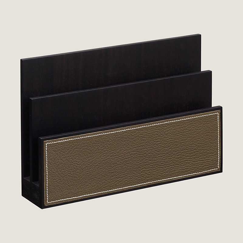 Hermes mail sorter in java solid palissander wood with Mysore goatskin
