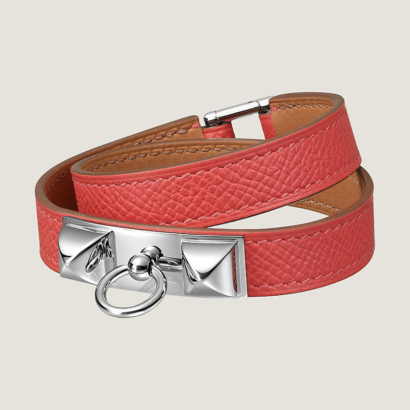 Double tour bracelet in Epsom calfskin with Zermatt calfskin lining and palladium plated Medor pyramid studs and ring