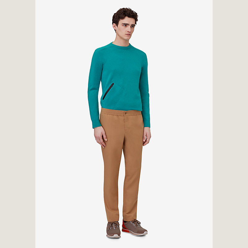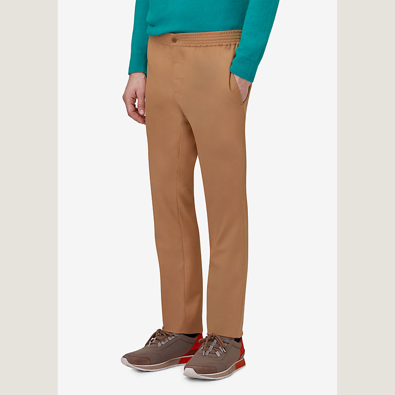 Hermes pants in cotton, fitted cut, one back pocket, elastic waistband (100% cotton)