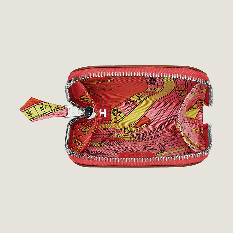 Hermes change purse in Epsom calfskin, lined with "Astrologie" printed silk