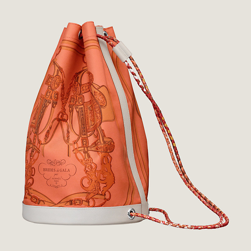 Hermes sport chic bag in "Brides de Gala" printed silk and Evercolor calfskin, weaved silk string shoulder and hand strap