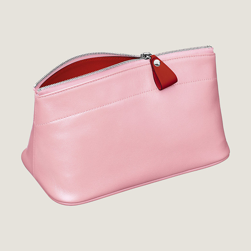 Pouch in Milo lambskin and Swift calfskin with contrasting Swift calfskin and canvas lining, palladium plated zip closure