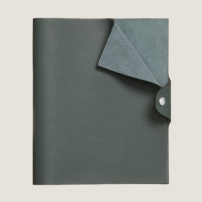 Notebook cover in Togo calfskin with palladium plated Clou de Selle snap closure