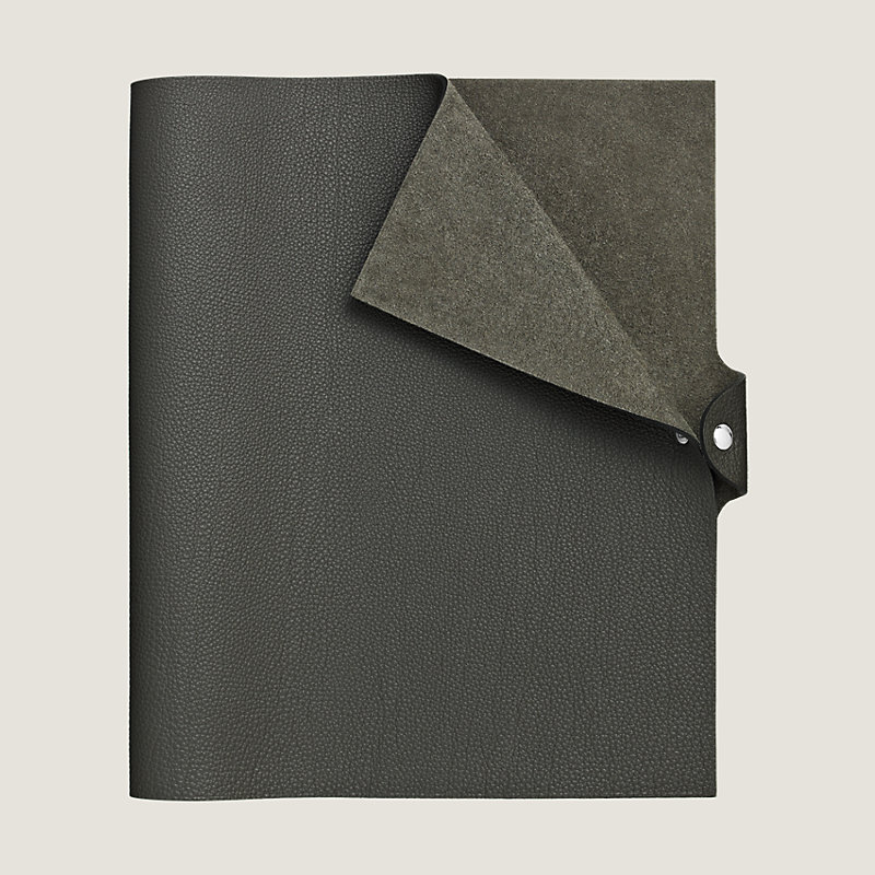 Notebook cover in Togo calfskin with palladium plated Clou de Selle snap closure, large model
