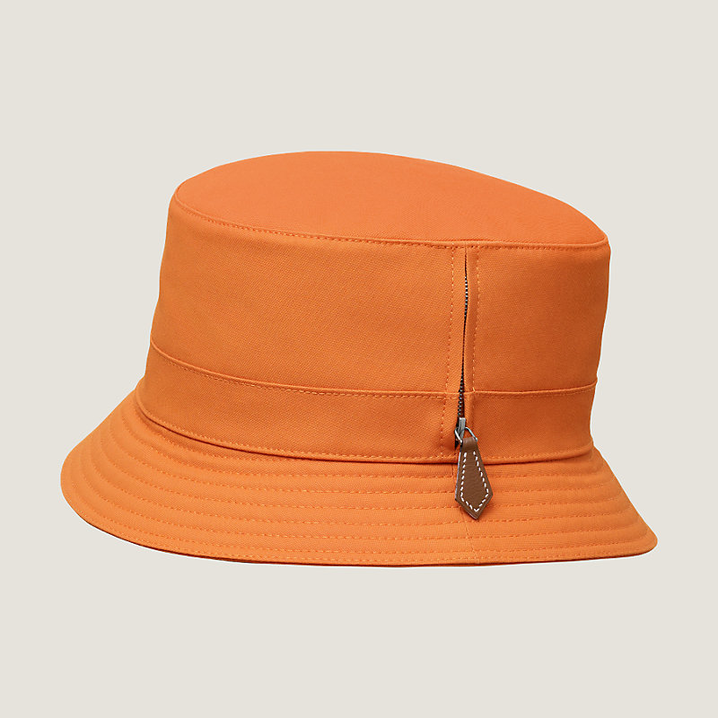 Hermes men's hat in water-resistant canvas, leather detail, linen canvas lining
