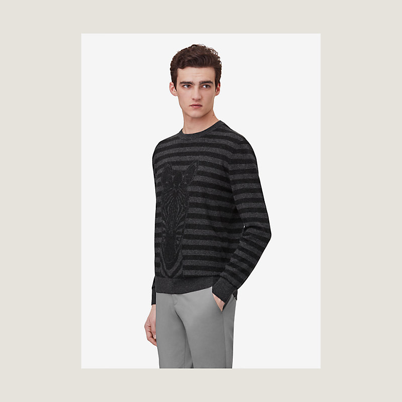 Hermes crewneck sweater in cashmere and wool with "Zebra" print (70% wool, 30% cashmere)