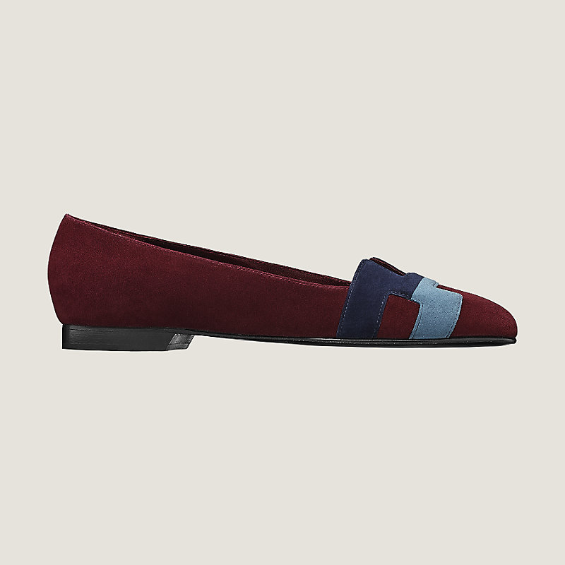 Ballerines en chèvre velours, découpe « H », doublure et première en cuir, semelle en cuir