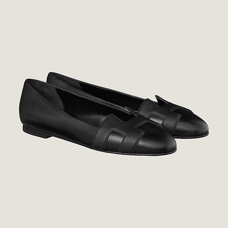 Ballerines en veau, découpe « H » en veau Epsom, semelle en cuir