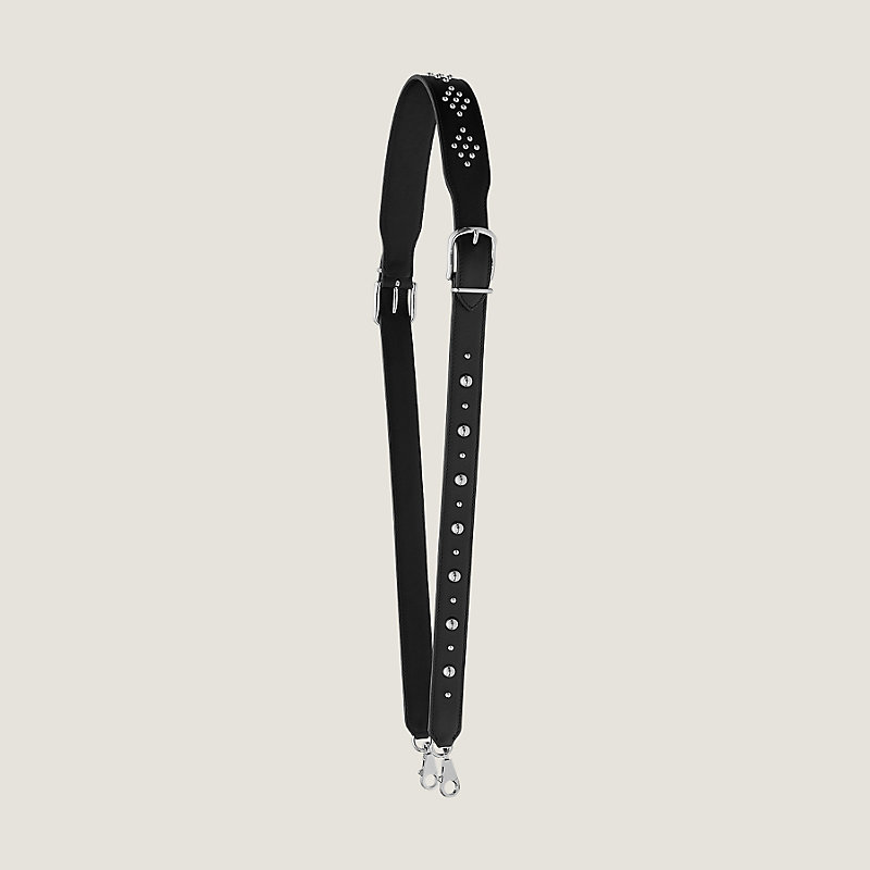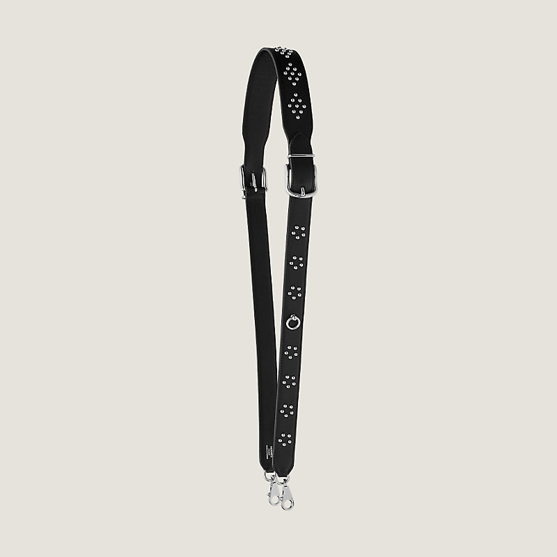 Bandoulière cloutée en veau Swift, bijouterie argentée palladiée, grand mousqueton