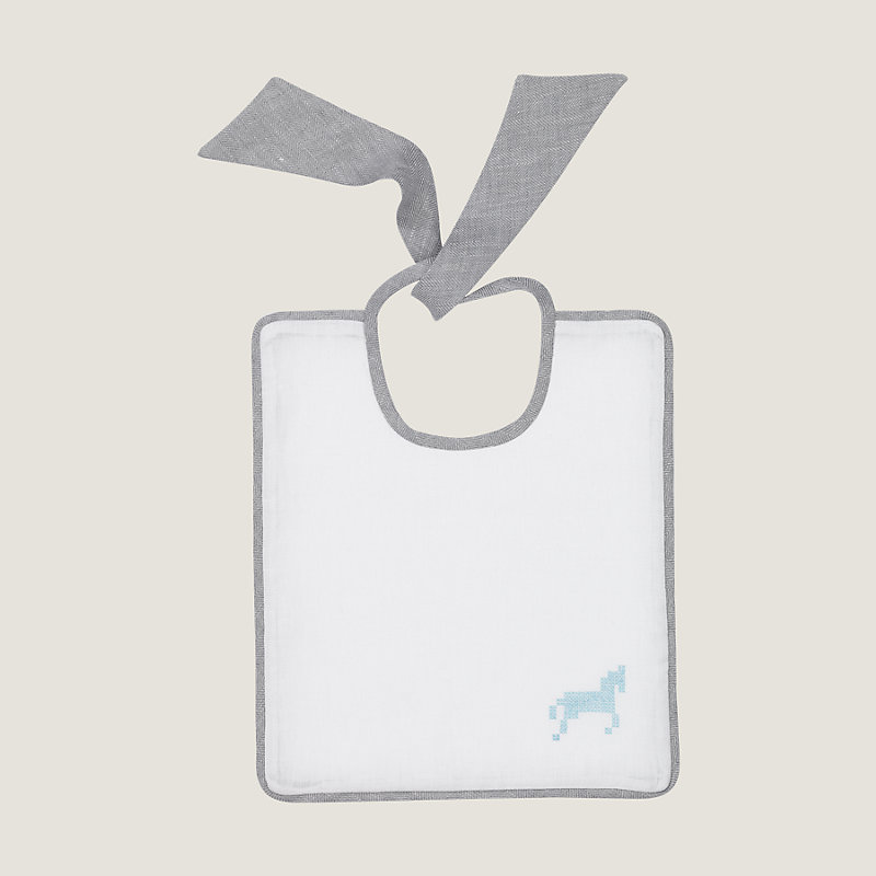 Bavoir en lin brodé à la main au point-de-croix, dos éponge de coton