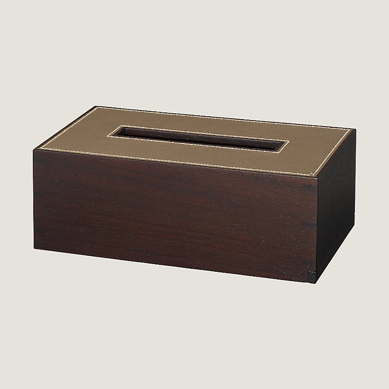 Boîte à mouchoirs en palissandre massif de Java gainé en taurillon lisse