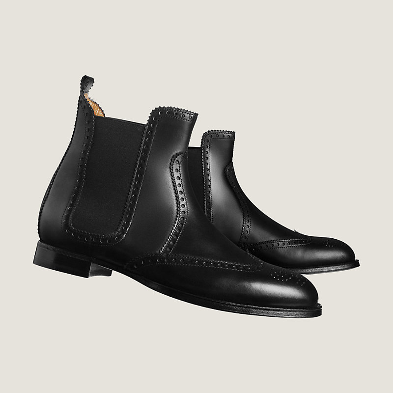 Bottines en veau, doublure et première en cuir, talon bottier et semelle cousue en cuir