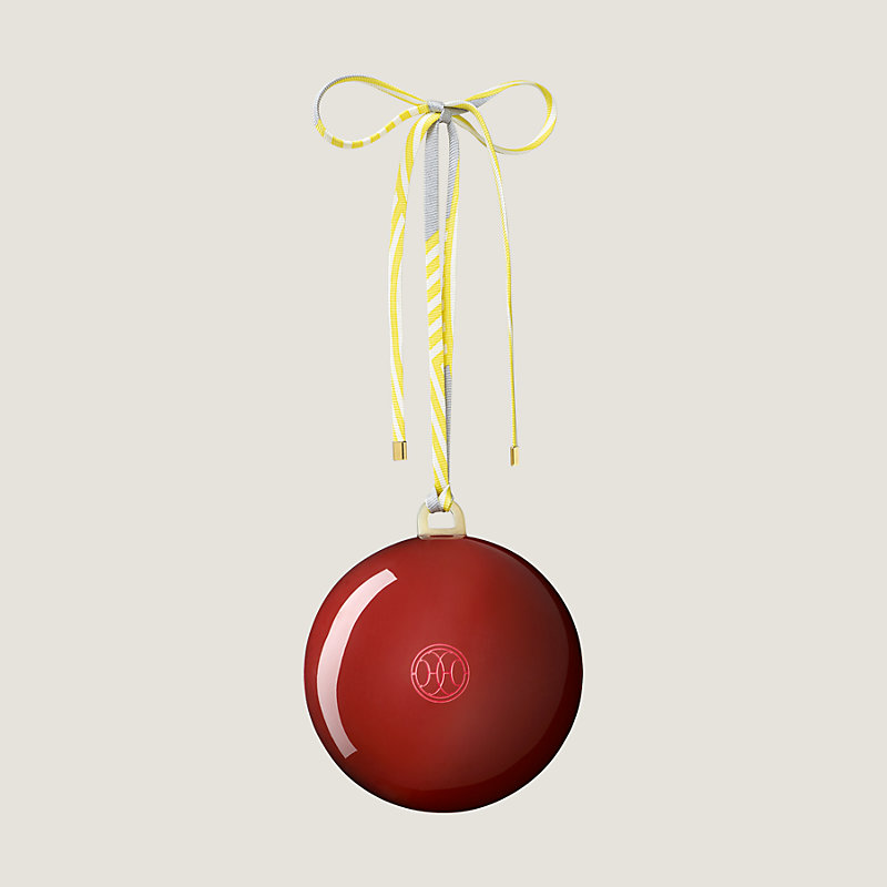 Boule de Noël en fibre de verre laquée main, bélière en corne de buffle, lien de soie