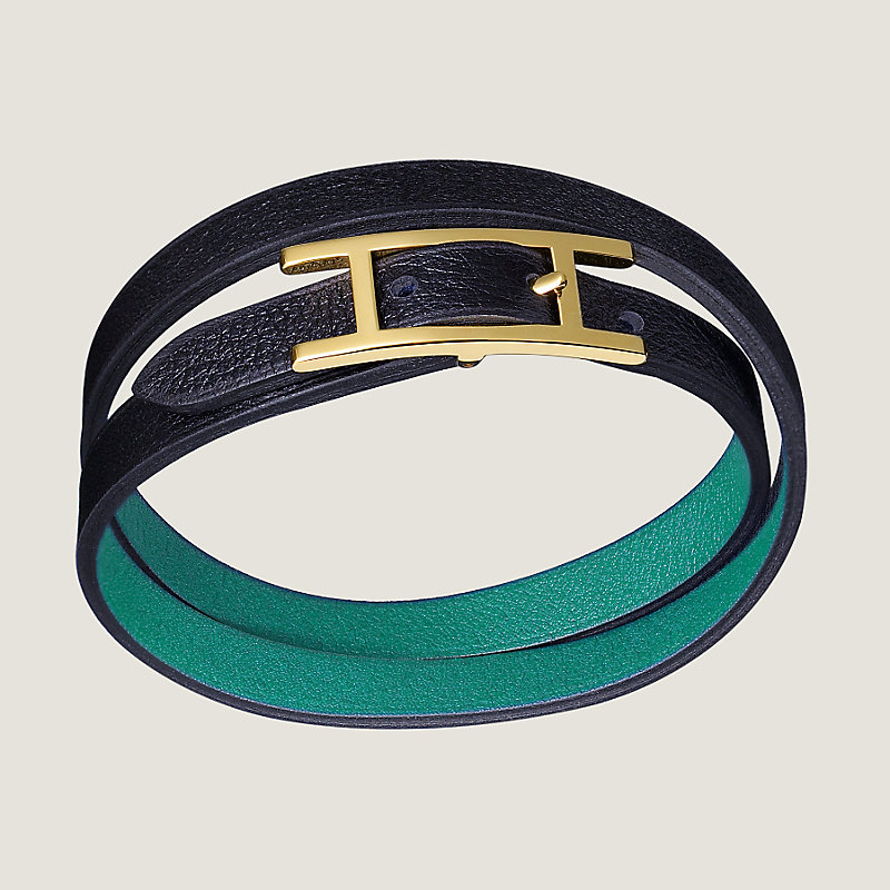 Bracelet double tour réversible en veau Swift. Finition plaqué or