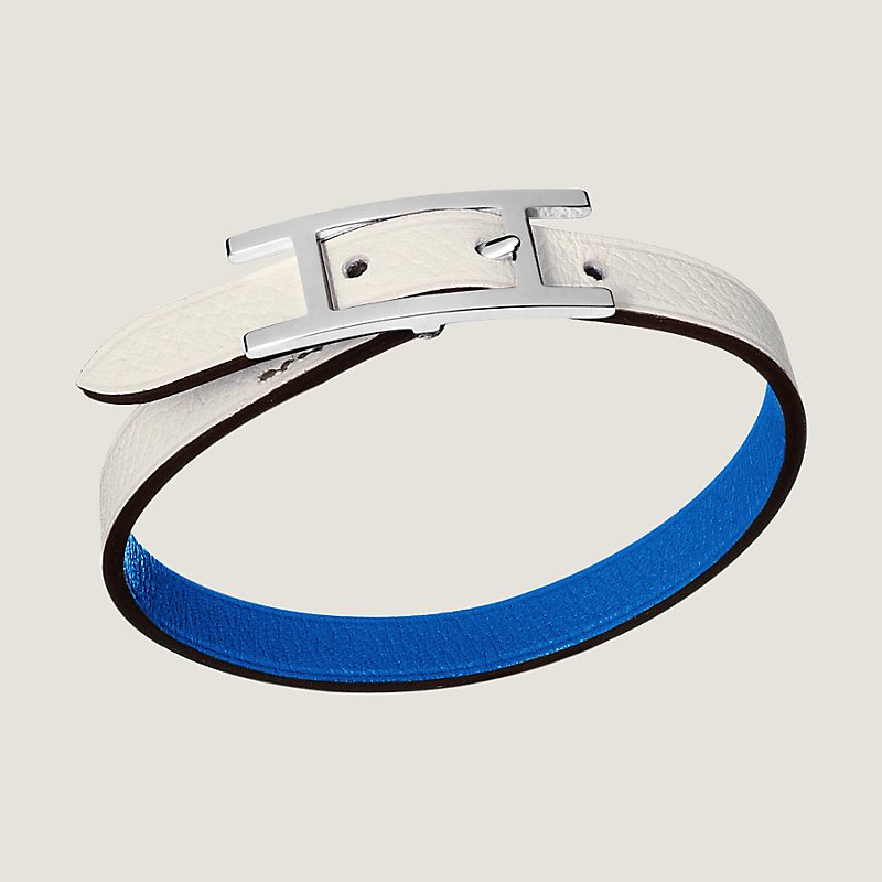Bracelet réversible en veau Swift et veau Epsom, fermoir palladié brossé