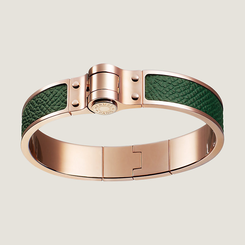 Bracelet à charnière en veau Epsom, fermoir plaqué or rose