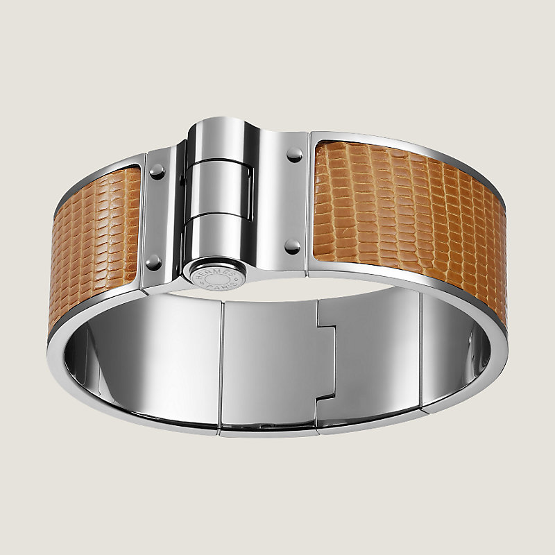 Bracelet à charnière en lézard Niloticus lissé, fermoir palladié