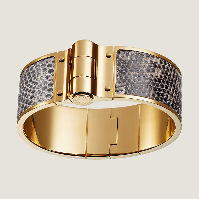 Bracelet à charnière en lézard Natura lisse, fermoir plaqué or
