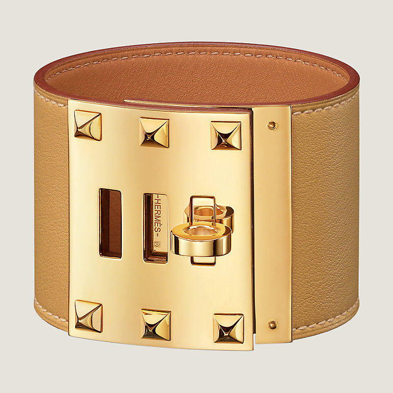 Bracelet cuir en veau Swift, fermoir plaqué or