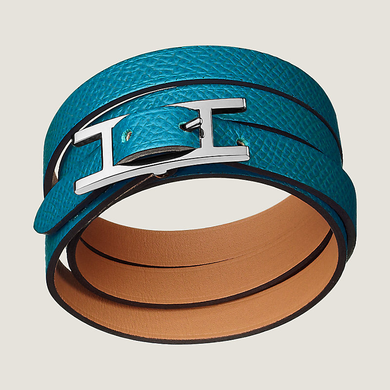 Bracelet multi tours en veau Epsom. Finition palladié