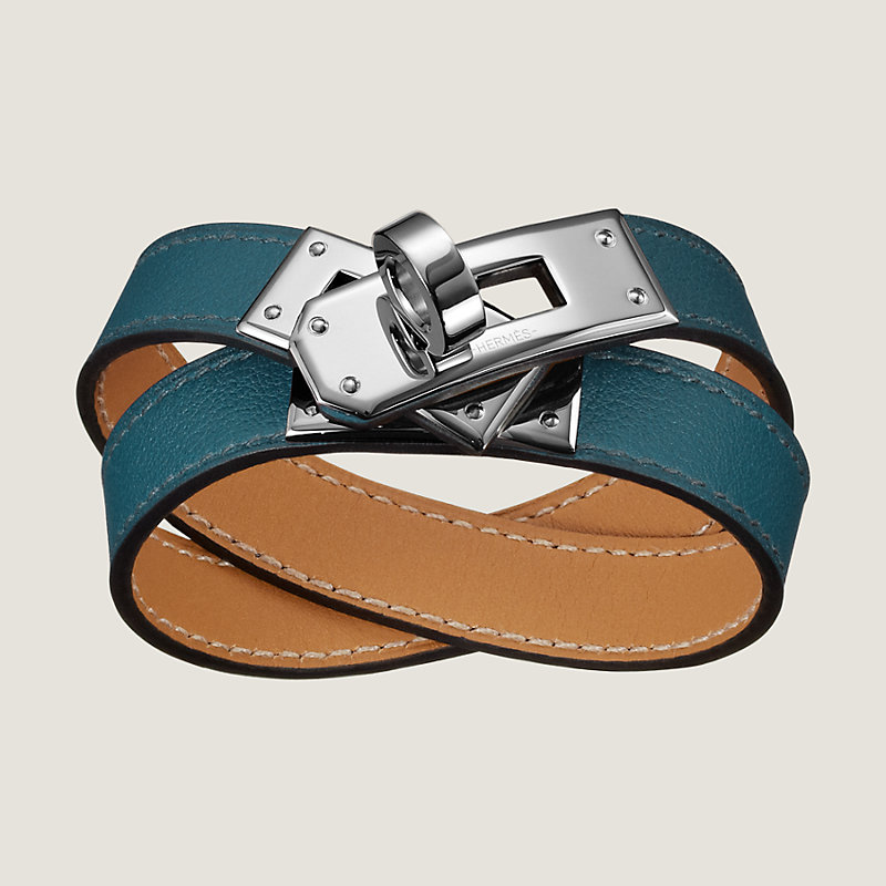 Bracelet double tour en veau Swift, doublure en veau Zermatt. Finition palladié