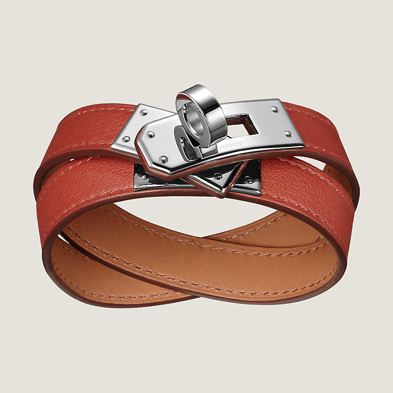 Bracelet double tour en veau Swift, doublure en veau Zermatt. Finition palladié