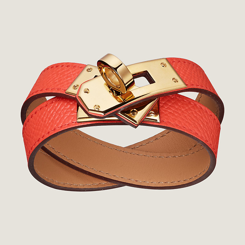 Bracelet double tour en veau Epsom doté d'un fermoir Touret. Finition en plaqué or