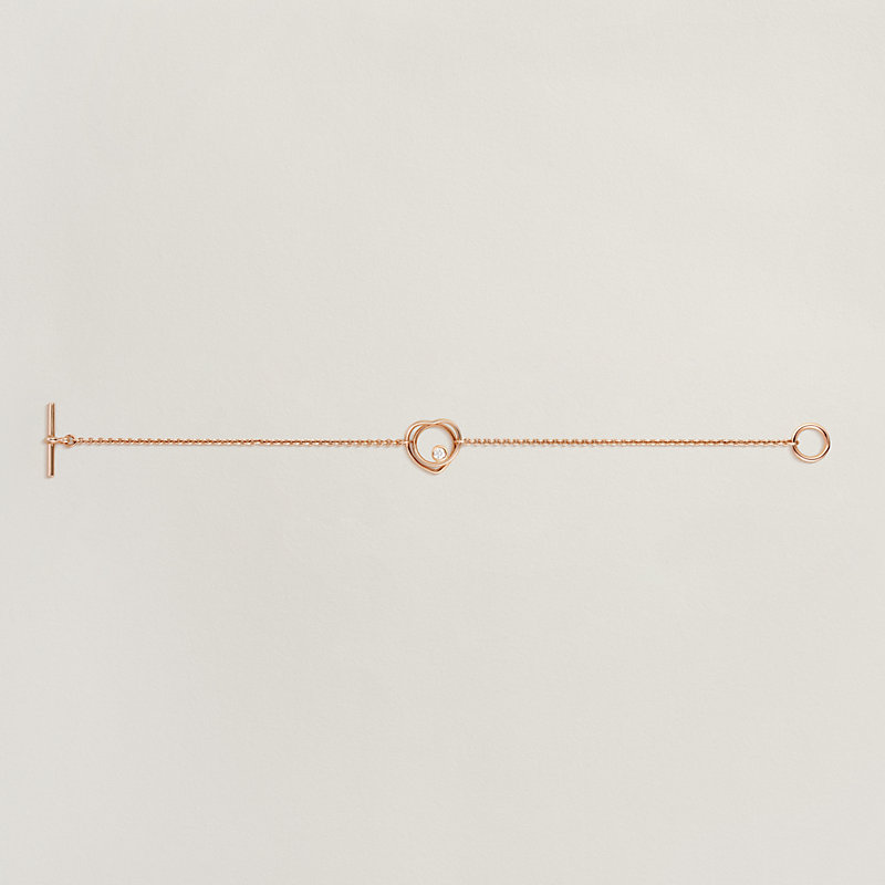 Bracelet en or rose serti d'un diamant, fermoir anneau bâtonnet