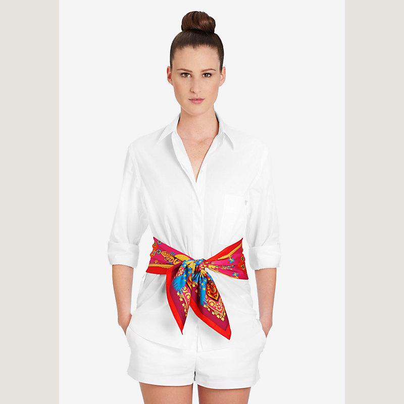 Carré en twill de soie, roulotté à la main