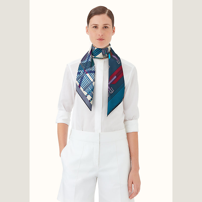 Accessoire intemporel du vestiaire Hermès, le carré 90 est un incontournable qui se porte aussi bien autour du cou, qu’en ceinture, en bandeau ou en turban.