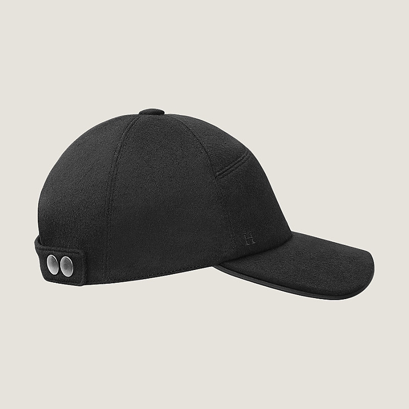 Casquette pour homme en drap de cachemire imperméable, doublée acétate, brodée H, visière en cerf, boutons pression Clous de Selle