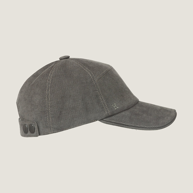 Casquette pour homme en velours milleraie, doublée acétate, brodée H, boutons pression Clous de Selle