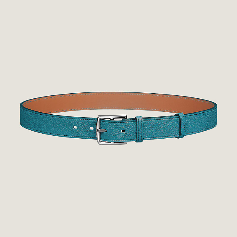 Ceinture en taurillon Clémence, boucle en métal palladié, détail H