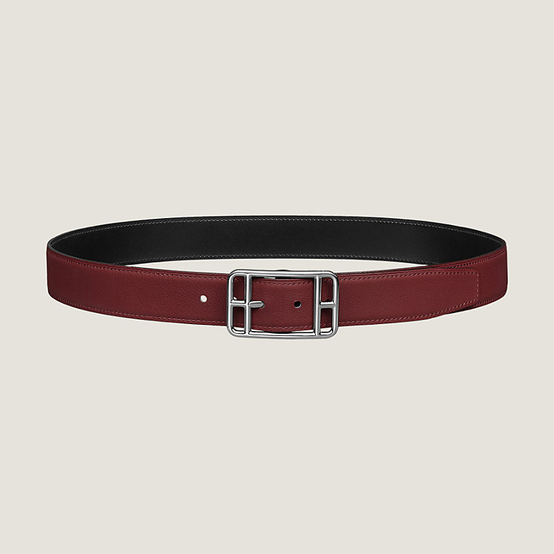 Ceinture réversible en veau Box et Taurillon Cristobal, boucle palladiée