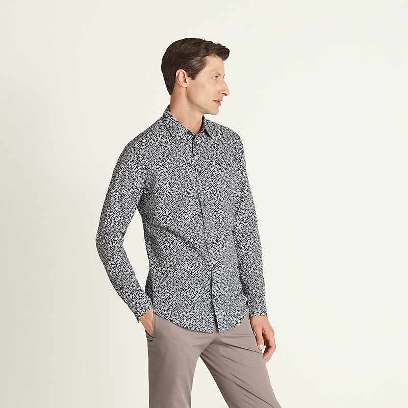 Chemise imprimée « Mini Maillons Chaîne d'Ancre », coupe ajustée, col souple, boutons en pure nacre, poignets simples avec boutons « Clou de Selle » en palladium, coutures renforcées (7 points par cm) en coton faux Uni H (100 % coton)